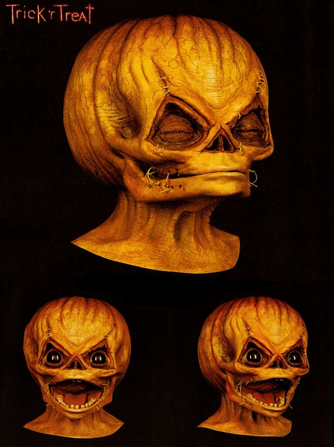 Sam, or "Samhain", is the brainchild of film director/writer Michael Dougherty, appearing first in Dougherty's 1996 short film, Season's Greetings, and then in the horror film Trick 'r Treat. He was played by child actor Quinn Lord in the film. Appearing as a seemingly innocent masked trick-or-treater, Sam is revealed to be a demonic pumpkin-like creature who acts as the enforcer for the rules and traditions of Halloween, and is willing to do anything to make sure these rules are honored. Sam is essentially the Spirit of Halloween and has even been said by some to be a personification of the holiday itself. Since the film's release, Sam has become the mascot of Halloween.