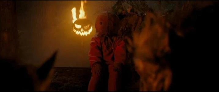 During the film, Sam watches as a group of werewolves feast on a gathering of unsuspecting men and punishes several children by raising the corpses of the school bus massacre victims after they kick over a Jack O' Lantern. Chronologically prior to these events, Sam invades Mr. Kreeg's house in order to teach him the rules of Halloween. Kreeg fights for his life until he unintentionally gives Sam some chocolate. Sam's last appearance in the film is him going to punish a woman named Emma after she puts out the candle in a Jack O' Lantern. Sam slits her throat with the sharp lollipop that he was going to use on Mr. Kreeg, then strings up her various disembodied parts like Halloween decorations.