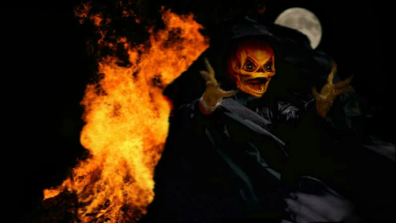 Being the Spirit of Halloween and possessing god-like or near god-like power, Sam can alter his shape, size, and overall appearance at will and may choose to come in any form as he so pleases. This being the case, Sam's disguise of choice is that of a child dressed in an innocent-looking Scarecrow costume. The scarecrow itself symbolizes fear and its manipulation. It is possibly for this reason that Sam chooses to masquerade as one.